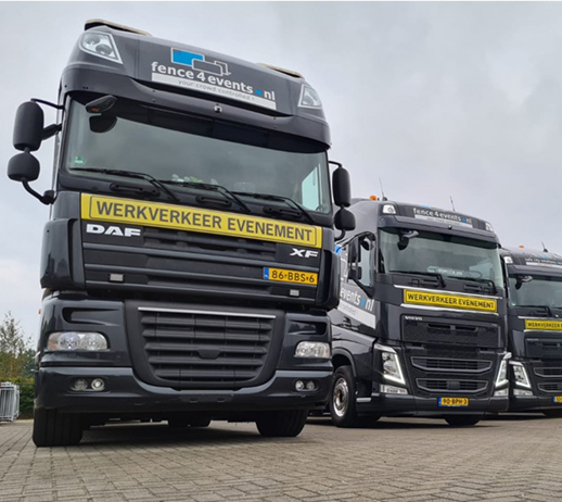 Bij Fence 4 Events leveren we niet alleen hekwerken, we zorgen dat alles op het juiste moment op de juiste plek staat. Met onze eigen transportvloot houden we controle over planning, kwaliteit en flexibiliteit, waardoor we ook tijdens drukke periodes snel kunnen schakelen en door heel Nederland en zelfs in Europa kunnen leveren. Onze vrachtwagens kunnen worden uitgerust met een kooiaap, een compacte heftruck die meereist, zodat we ook op lastig bereikbare locaties zelf kunnen lossen. Ideaal voor drukke opbouwdagen of plekken waar je niet makkelijk kunt komen. Tegelijkertijd investeren we in duurzaamheid en beschikken we over een elektrische vrachtwagen. Dat is niet alleen beter voor het milieu, maar zorgt er ook voor dat we op steeds meer locaties mogen komen, zoals binnensteden en milieuzones.